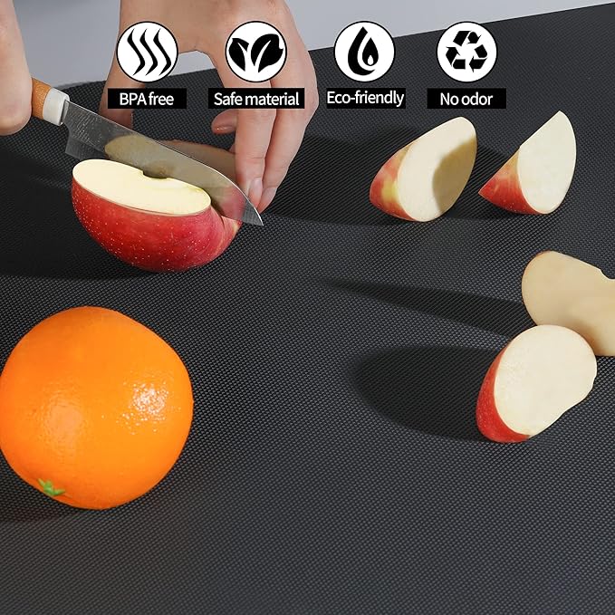 - SAFE MATERIAL AND NON ADHESIVE: Our kitchen shelf liner is made of high quality food-graded material, which is soft and durable without odor or BPA. So it is safe to be used directly in contact with fruit and vegetable. What’s more, the drawer liner is non-adhesive so you can easily remove to clean or to change the liner.