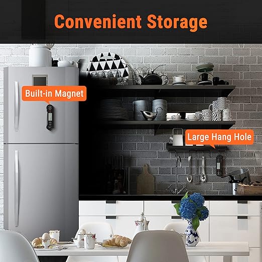 - IP65 Waterproof & Convenient Storage: Quickly clean the digital meat thermometer with probe under running water; features a magnetic back to allow for placement on any metal surface or use the hang hole for hooks