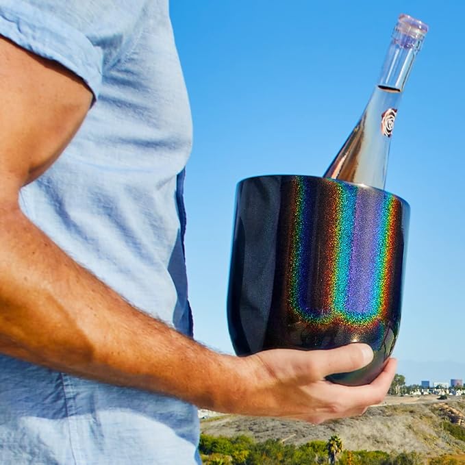 - Constructed For Lifetime Use: Your handsome new ice bucket is crafted with strong vacuum-insulated food-grade stainless steel in a double-wall design for the ultimate in durability, integrity, and temperature control. Even with the lid off, your ice stays ‘ice’ and wine, champagne, or beer bottles remain perfectly chilled, just how you like it. Ideal dimensions and container size make it the perfect mixology assistant for every cocktail party. Hand-wash only.