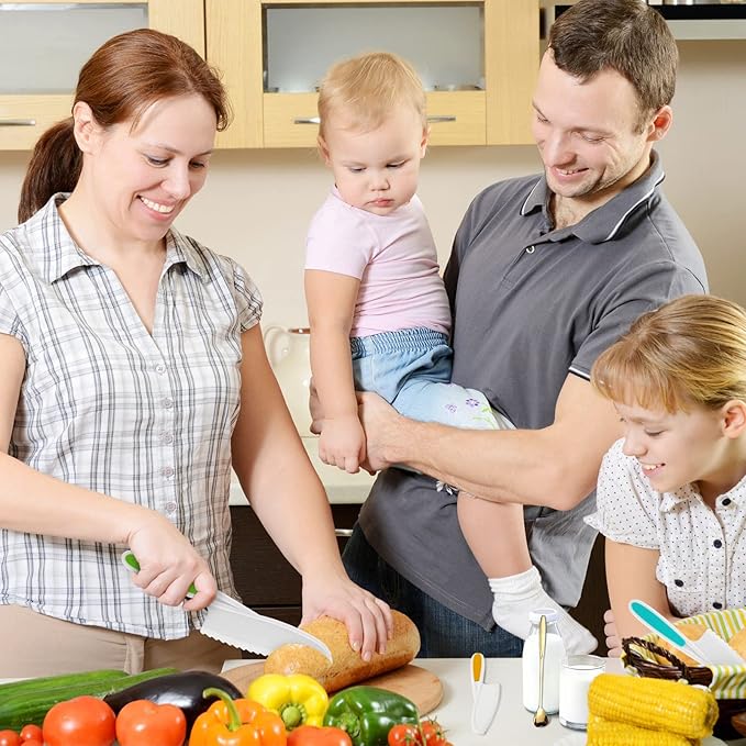 - 💖 ZERO RISK HAPPY OPERATION: This knives for kids tool conforms to ergonomic principles and hand-held design. children can use it easily The quality of the cut food is as beautiful as that of the metal knife. Children who like to do things with their hands can also learn to cook all kinds of food with their families in the kitchen, which is both safe and can enhance parent-child relationship.It is also safer to use this childrens knives for cooking, and the ingenious family should not miss it.