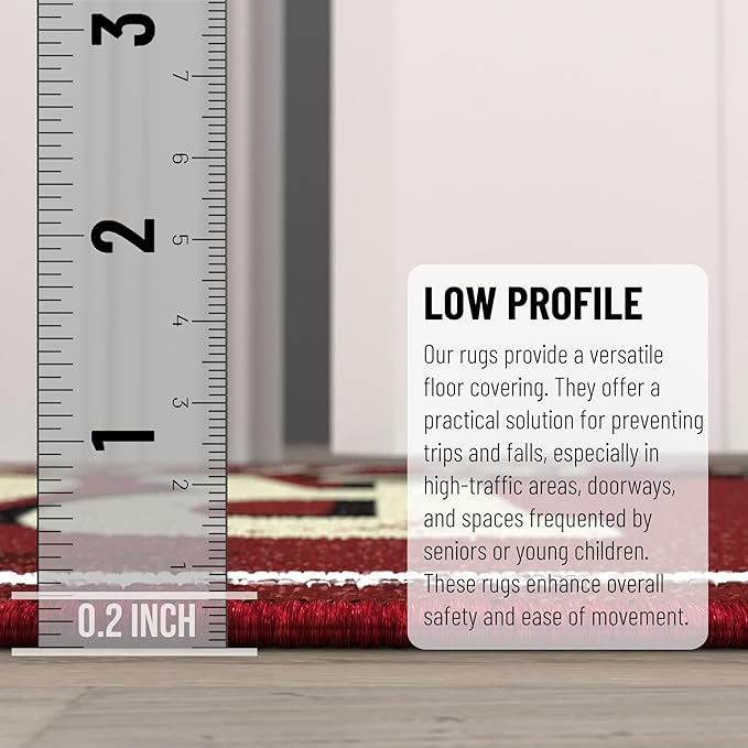 - [LOW PILE]: A low pile thickness of 0.2 inches offers ideal functionality that is perfect for busy areas, underneath furniture, and in entryways as it will not obstruct doorways.