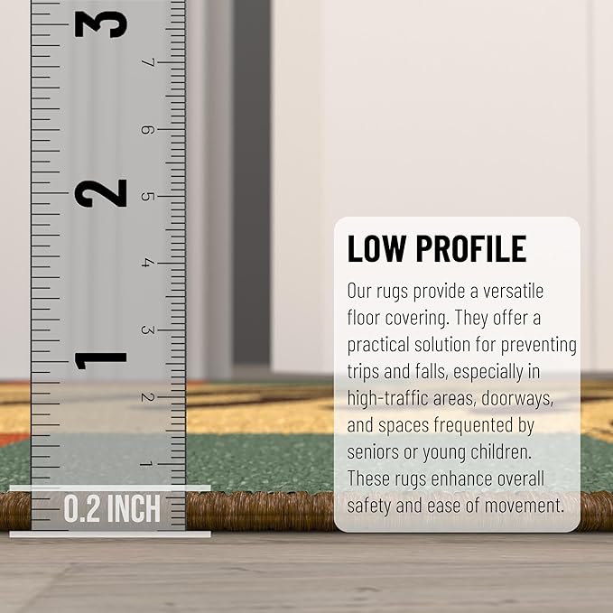 - [LOW PILE]: A low pile thickness of 0.2 inches offers ideal functionality that is perfect for busy areas, underneath furniture, and in entryways as it will not obstruct doorways.