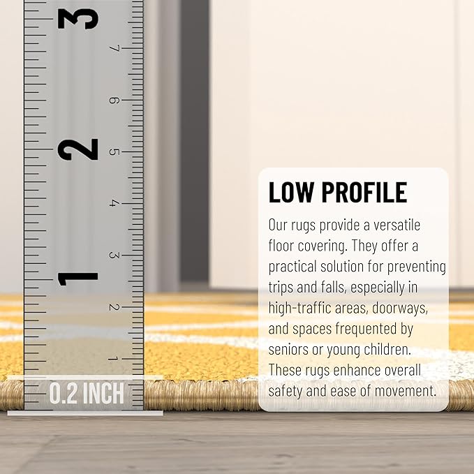 - [LOW PILE]: A low pile thickness of 0.2 inches offers ideal functionality that is perfect for busy areas, underneath furniture, and in entryways as it will not obstruct doorways