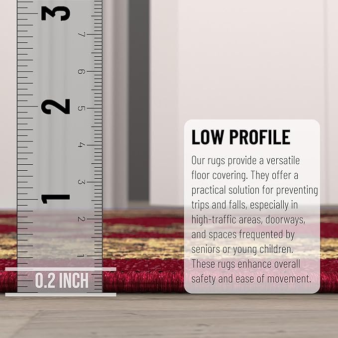 - [LOW PILE]: A low pile thickness of 0.2 inches offers ideal functionality that is perfect for busy areas, underneath furniture, and in entryways as it will not obstruct doorways.