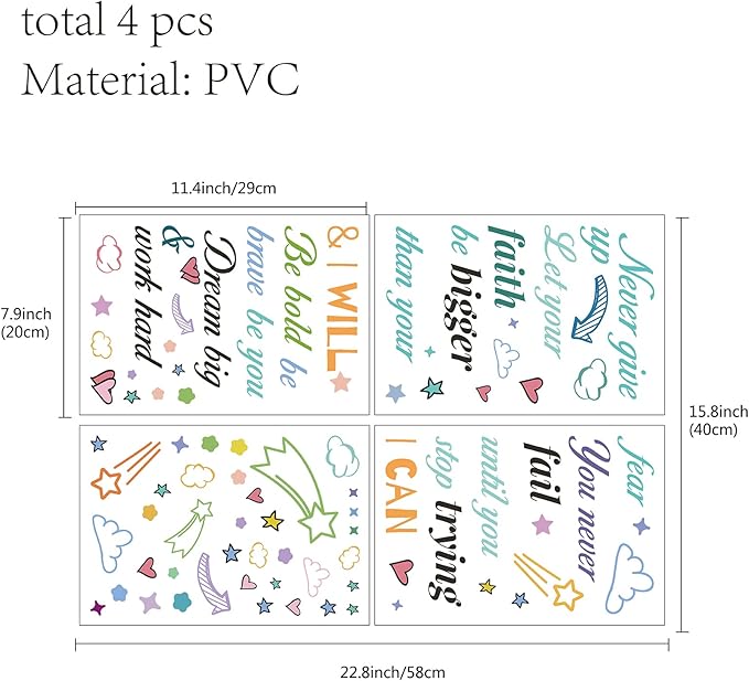 CREATCABIN 4pcs Vinyl Wall Decals Inspirational Quotes Wall Stickers Self-Adhesive Peel and Stick Watercolor Mural Decoration for Bedroom Living Room Kitchen Wardrobe Door Playroom Classroom