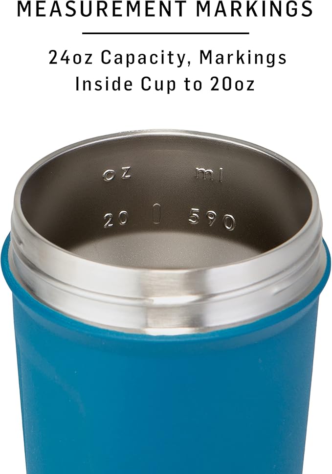 - Includes 2 stainless steel shaker cups with 24-ounce capacity (interior markings go to 20-ounces) and 2 wide-mouth reusable silicone straws