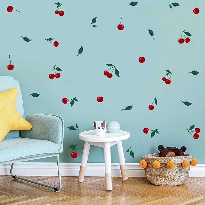- Total 3 sheets, 11"X11"/sheet, cute fruit red cherry wall decal.