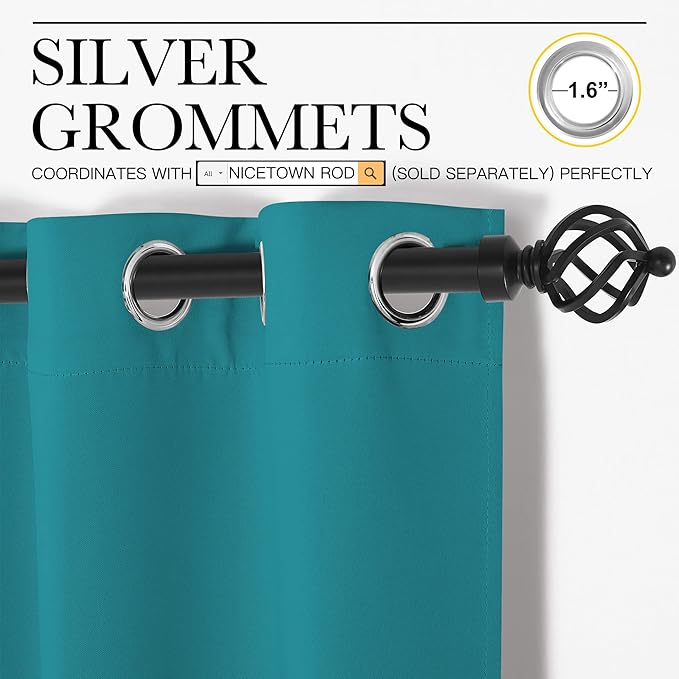 NICETOWN Room Darkening Curtains 63 inch Length 2 Panels, Thermal Insulated Grommet Blackout Curtains for Modern Casual Elegant Bedroom Kids Room Theme Decoration (Peacock Teal, 2 Pieces, W42)