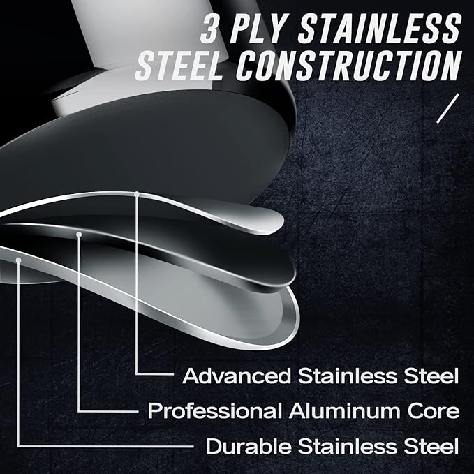 - 【3 Ply Stainless Steel Construction】Professional aluminum core, inside and outside advanced stainless steel wrap design, so the steel pot is heated more evenly, compared to the thin stainless steel pot is also more sturdy.