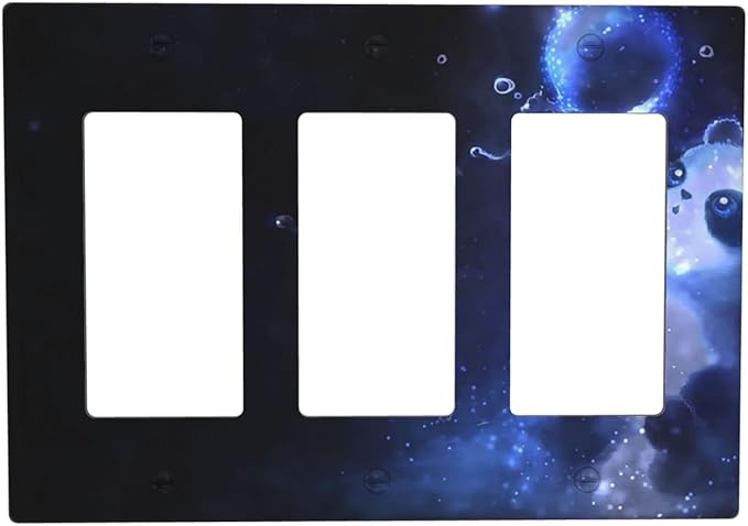 Cute Baby Panda Light Switch Cover Wall Plate Decorative 3 Gang Triple Rocker Covers Blue for Kitchens Living Room Bedrooms Farmhouses Bathrooms 4.65 x 6.57 in