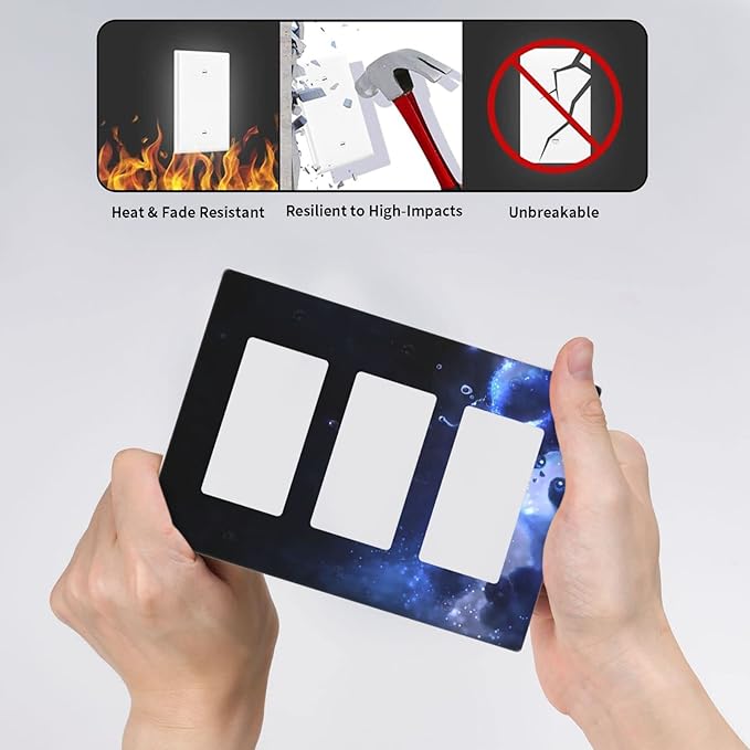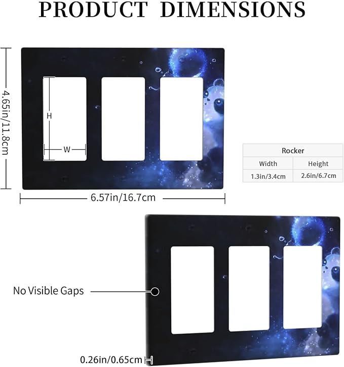 - Size:triple rocker wall plate : 4.65" x 6.57".the standard Size is easy to install on the wall grid, covering more wall defects, which makes it easy to decorate any standard switch cover and electrical socket.