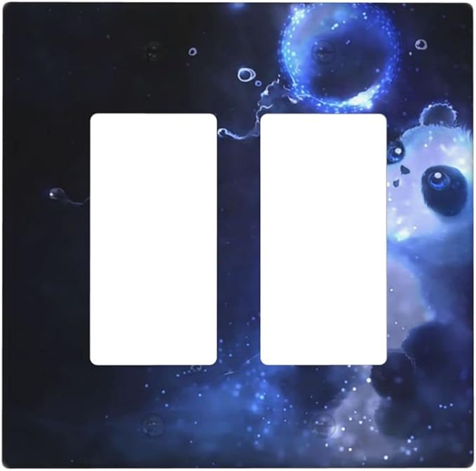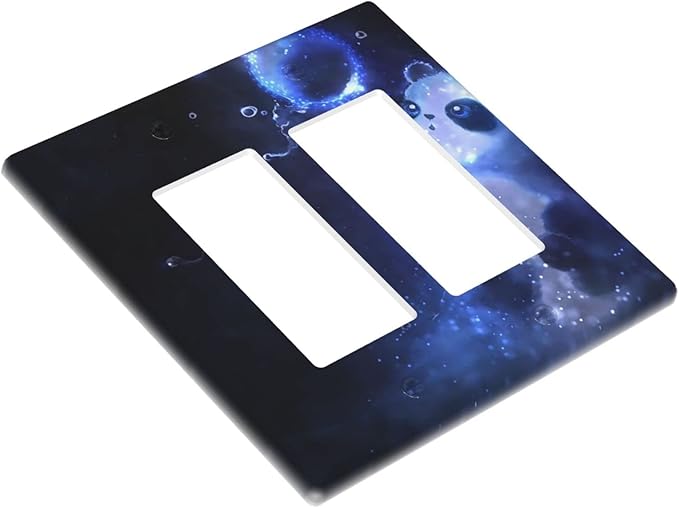 Cute Baby Panda Light Switch Cover Wall Plate Decorative 2 Gang Double Rocker Covers Blue for Farmhouses Playrooms Bedrooms Bathrooms 4.5 x 4.6 in