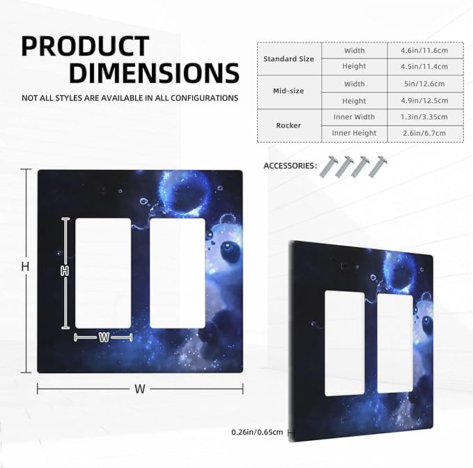 - Size:double rocker wall plate : 4.5" x 4.6".the standard Size is easy to install on the wall grid, covering more wall defects, which makes it easy to decorate any standard switch cover and electrical socket.
