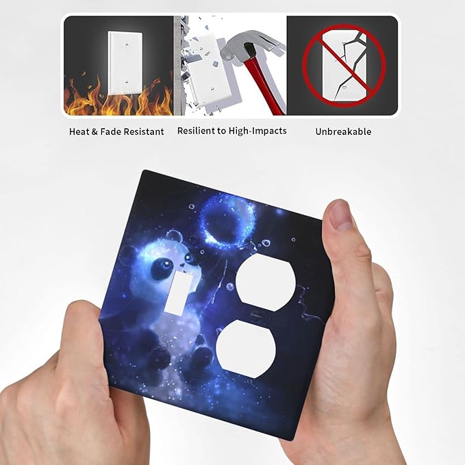Cute Baby Panda Light Switch Cover Wall Plate Decorative 2 Gang Combination Toggle/Outle Covers Blue for Kitchens Farmhouses Duplex Electrical Receptacle Covers 4.5 x 4.6 in