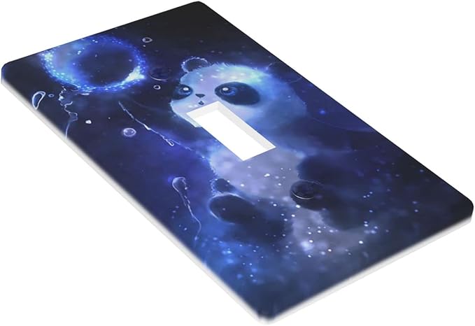 Cute Baby Panda Light Switch Cover Wall Plate Decorative 1 Gang Single Toggle Covers Blue for Farmhouses Kitchenss Bedrooms Bathrooms 2.76 x 4.5 in
