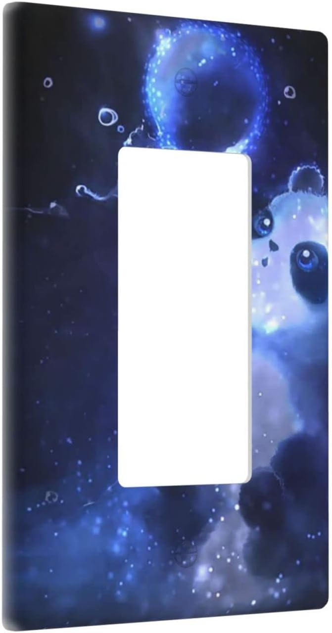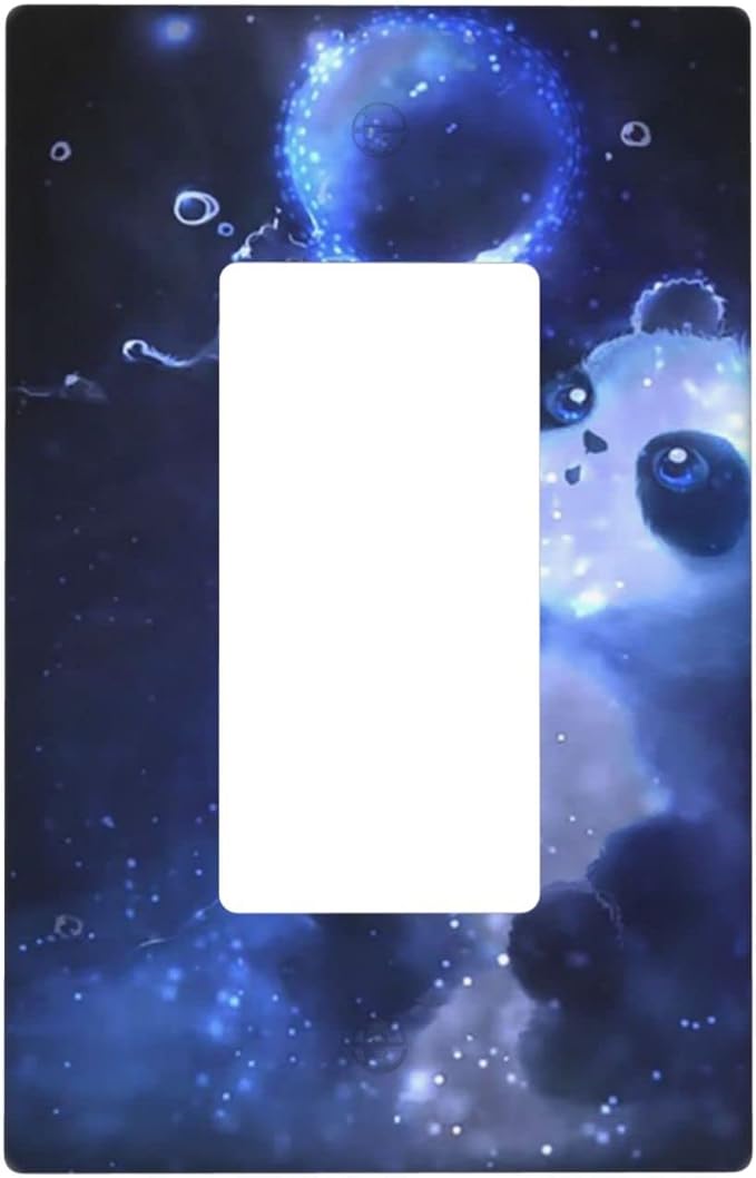 Cute Baby Panda Light Switch Cover Wall Plate Decorative 1 Gang Single Rocker Covers Blue for Playrooms Farmhouses Bathrooms Kitchens 2.76 x 4.5 in
