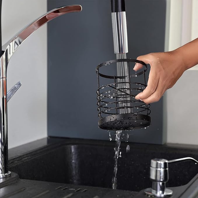 - Made with Rust-Resistant Steel: This kitchen utensil holder made of durable rust-resistant steel construction with matte black matches a variety of kitchen decor styles, whatever rustic or fashion style.