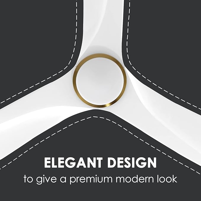 WINGBO 60 Inch DC Ceiling Fan with Lights and Remote Control, 3 Reversible Carved Wood Blades, 6-Speed Noiseless DC Motor, Modern Ceiling Fan in Brass Finish with White Blades