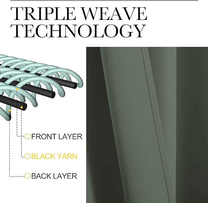 - MULTI-FUNCTION: Super heavy and soft Blackout Curtain Panels are very upmarket. Besides, 85%-99% light blocking, thermal insulated, soundproof, Fade-resistant, energy-efficient. Thread trimmed and wrinkle-free, both sides are the same color.