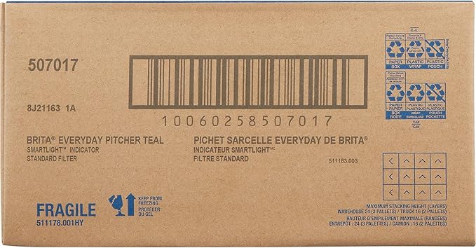 Brita Large Water Filter Pitcher for Tap and Drinking Water with SmartLight Filter Change Indicator, Includes 1 Standard Filter, BPA-Free, Lasts 2 Months, 10-Cup Capacity, Teal