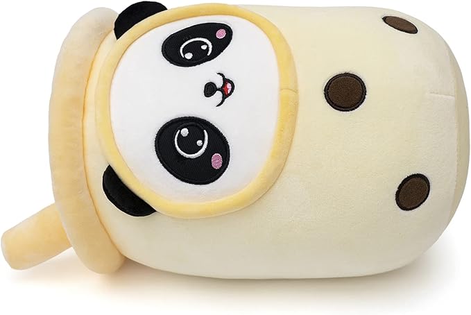 - Design concept of this boba plushie is showing kids how cute,fun,funny and endearing the animal body pillow is. Combined with bubble tea and panda image, the cuddle pillow makes kids want to hug it and its fluffy fur makes kids feel secure and help kids relieve stress and anxiety when they sleep alone.
