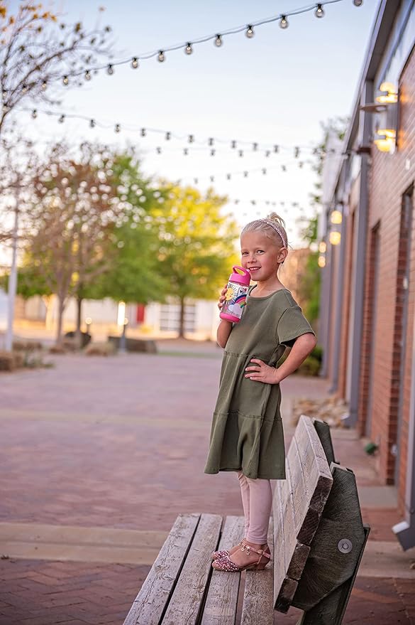 - SPECIAL FEATURES: A flip top lid prevents leaks & keeps the straw clean. Each bottle even comes with 2 straws! Plus, a built-in food compartment for on-the-go snacks!