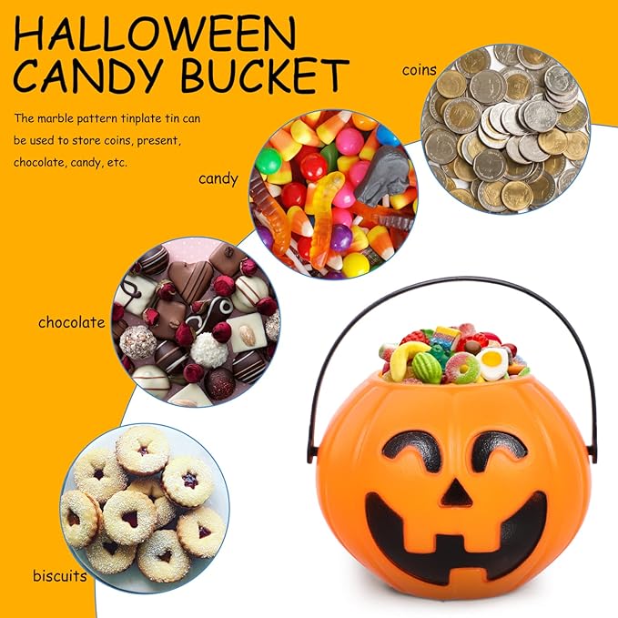 - TRICK OR TREAT- Our Trick- or- Treat Bucket is designed for kid to carry candies and toys on Halloween. Lightweight and portable, can be carried to anywhere with loaded of trophies.