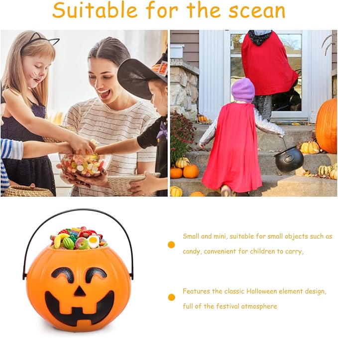 - PACKAGE INCLUDED- 20 × MINI SMALL Halloween Pumpkin Buckets ( 2.75 × 2.36 ) with classic Jack- o- lantern appearance. Suitable for carrying any kinds of treats.