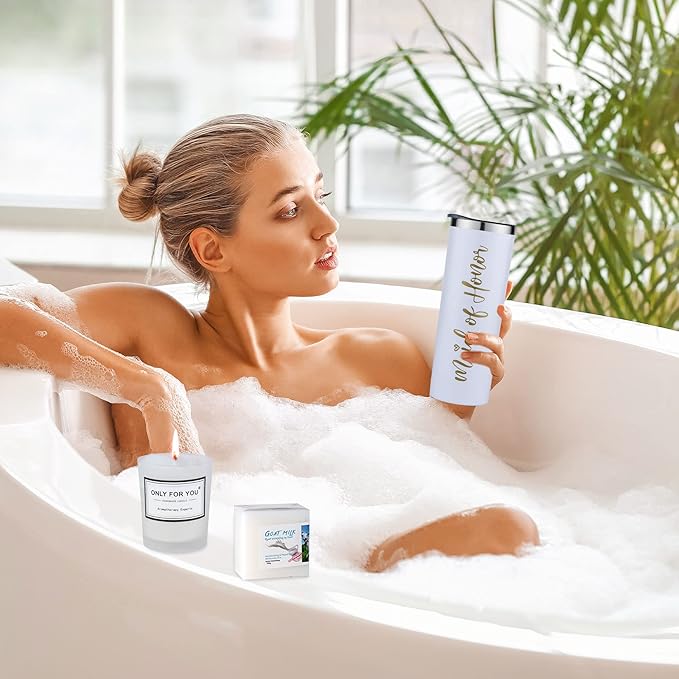 - Perfect Maid Of Honor Gift Box: This a simple perfect gift for your maid of honor . Ask “Will you be my maid of honor?” Package include:1x Stainless steel champagne flutes,1x jewelry set,1x rose gold bangle,2x silk hair rings,1x goat milk soap,1x candle,1 xbridesmaid card,1x bridesmaid gift box