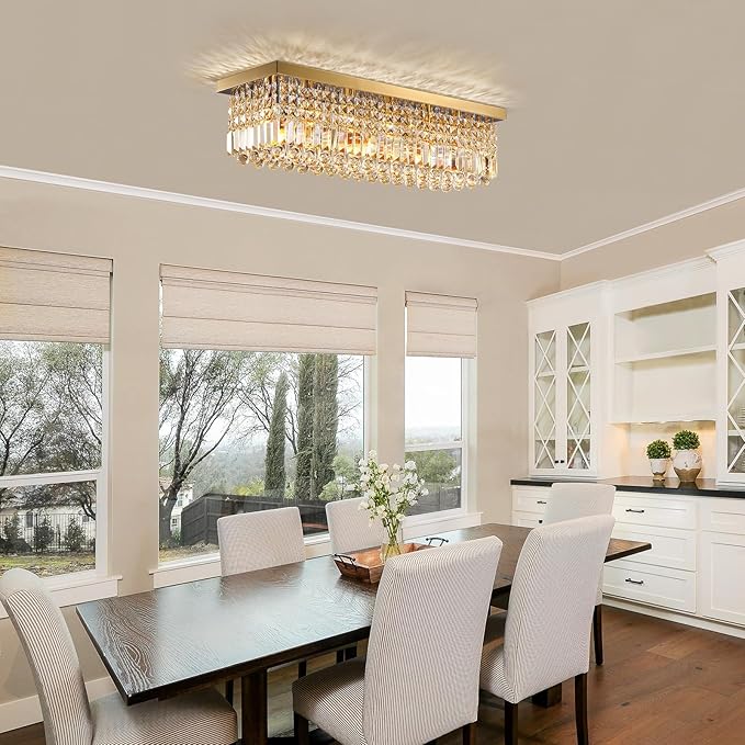 - ✨【Luxury Gold Crystal Chandelier】: Luxury rectangular chandelier in elegant raindrop design combines modern & minimalist elements, which delivers a superior & high-class ambiance in any spaces. Perfectly matches many decoration styles like modern, classic, farmhouse, industrial, nordic, etc. Suitable for dining room, living room, kitchen island, hallway, entryway, bathroom, bedroom, etc.