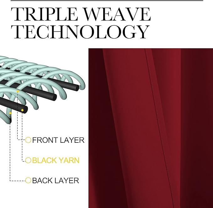 - ENERGY SMART: Triple weave blackout fabric balances room temperature by insulating against summer heat and winter chill. Protect your furniture, floors, and artwork from the ravages of the sun, the drapes will pay for themselves off over time.