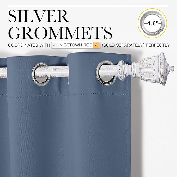 NICETOWN Stone Blue Room Darkening Curtain Panels 90" Length for Bedroom Living Room, Thermal Insulated Blackout Draperies for Home Decoration, Total Privacy (55" Width, 2 Pieces)