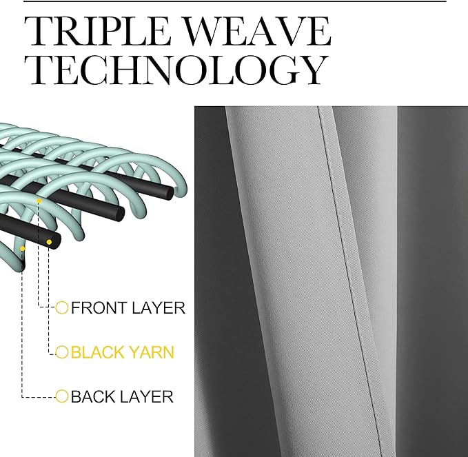 - ENERGY SMART: Triple weave blackout fabric balances room temperature by insulating against summer heat and winter chill. Protect your furniture, floors, and artwork from the ravages of the sun, the drapes will pay for themselves off over time.