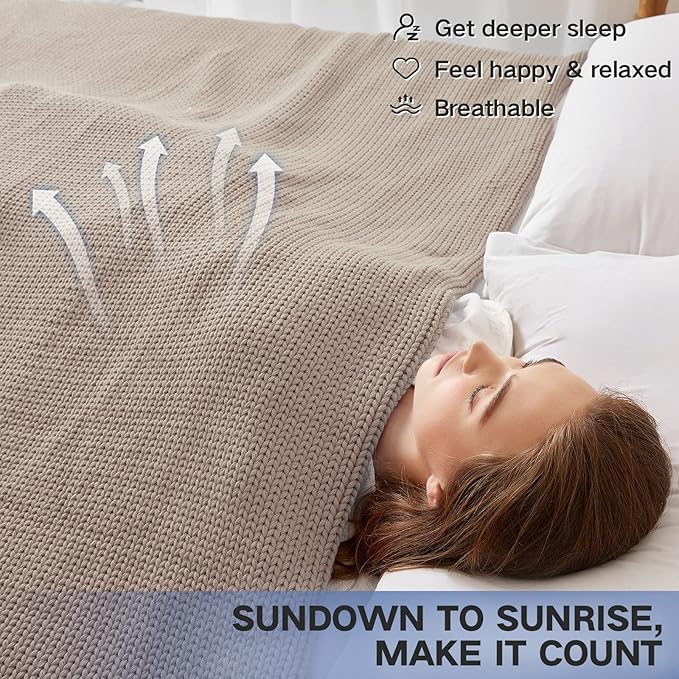 - SLEEP HELPER-If you are facing the poor sleep quality, this chunky knit blanket throw can undoubtedly your good sleep helper, enjoy the sleep with this amazing knitted weighted blanket.