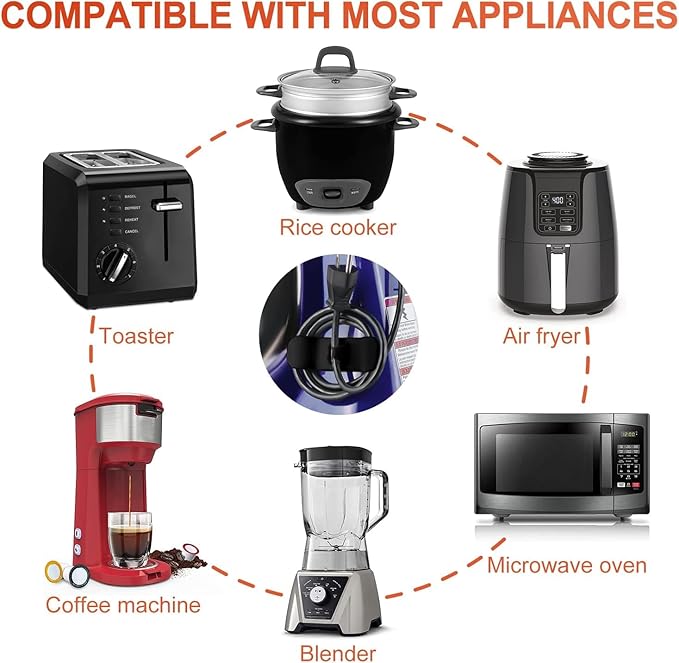 • WIDE RANGE OF APPLICATIONS: Our cord wrapper for appliance fits most small kitchen appliances wire. Use our kitchen appliance cord holder on blenders, coffee makers, air fryers, toasters, pressure cookers, microwaves and juicers. Is a useful kitchen gadget