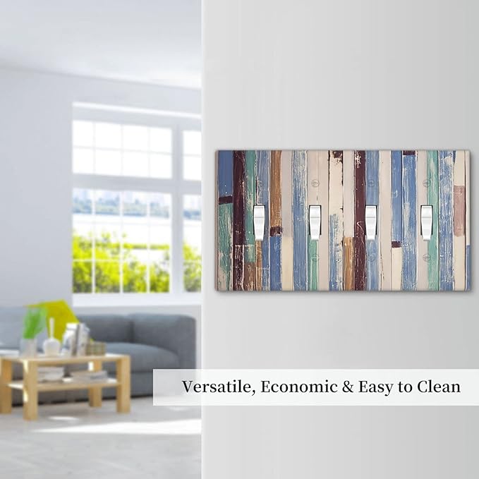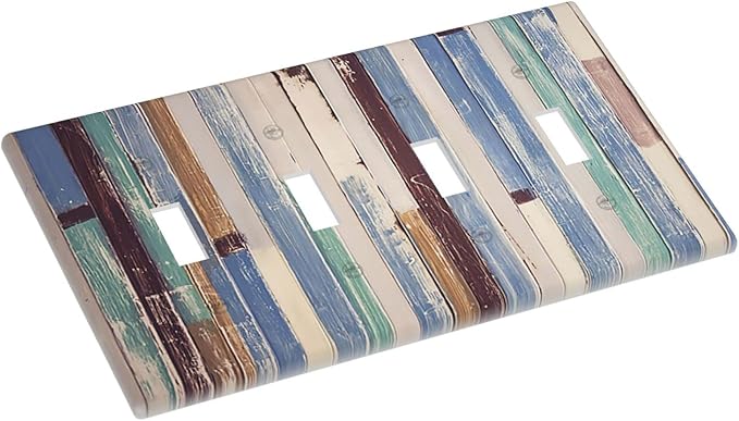 Vintage Wood Texture Farmhouse Decorative Light Switch Cover Wall Plate 4 Toggle Quad Four Gang for Kitchen Living Room Bedroom Bathroom Home Novelty Decorate