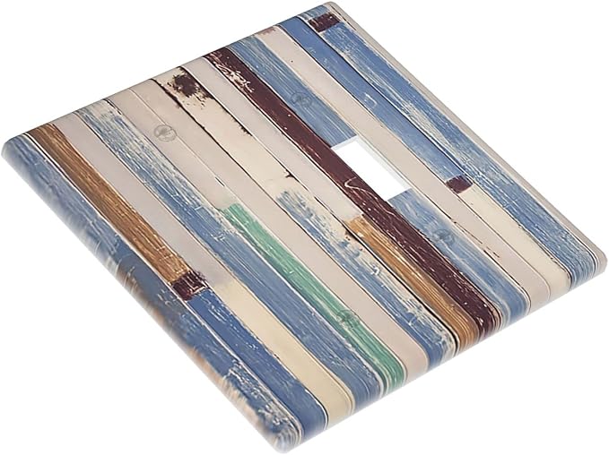 Vintage Wood Texture Farmhouse Decorative Combo 1 Blank Single Toggle Light Switch Cover Wall Plate 2 Gang One for Electrical Outlets Kitchen Living Room Bedroom Bathroom Home Novelty Decorate