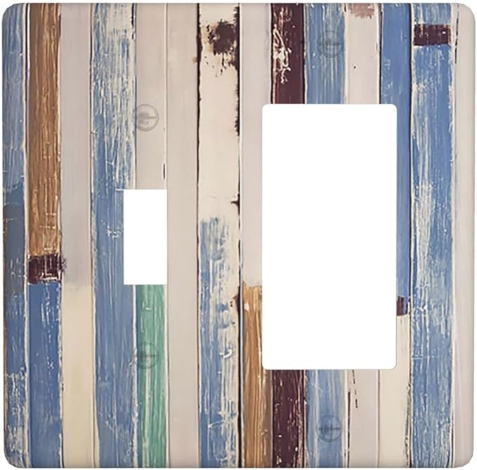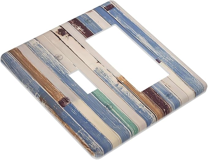 Vintage Wood Texture Farmhouse Decorative Combo 1 Toggle 1 Rocker Light Switch Cover Wall Plate Single Decora 2 Gang for Electrical Outlet Kitchen Living Room Bedroom Bathroom Home Novelty Decorate
