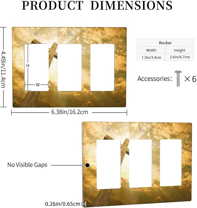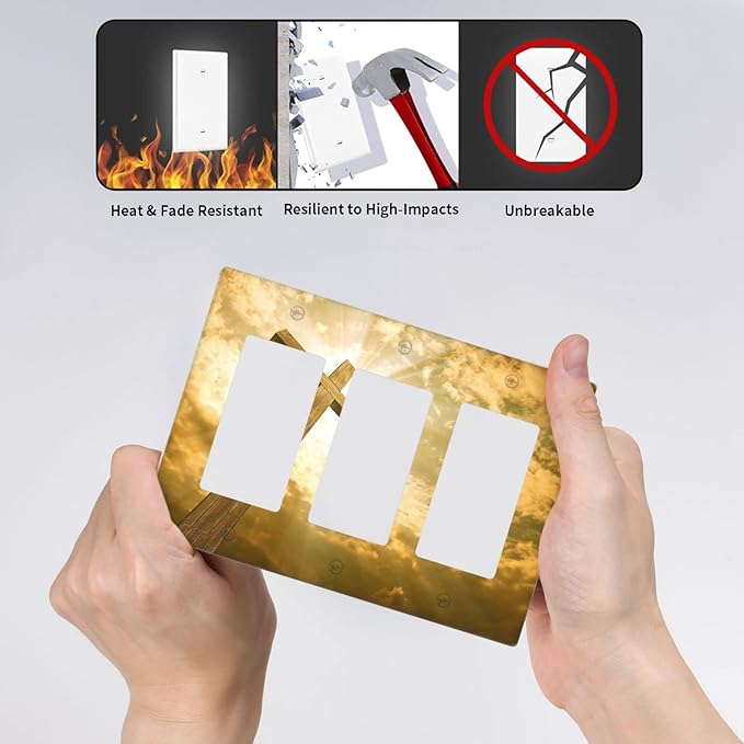 Christ Jesus Cross Sky Decorative Light Switch Cover Wall Plate 3 Rocker Triple Gang Three Decora for Outlet Kitchen Living Room Bedroom Bathroom Home Novelty Receptacle Decorate