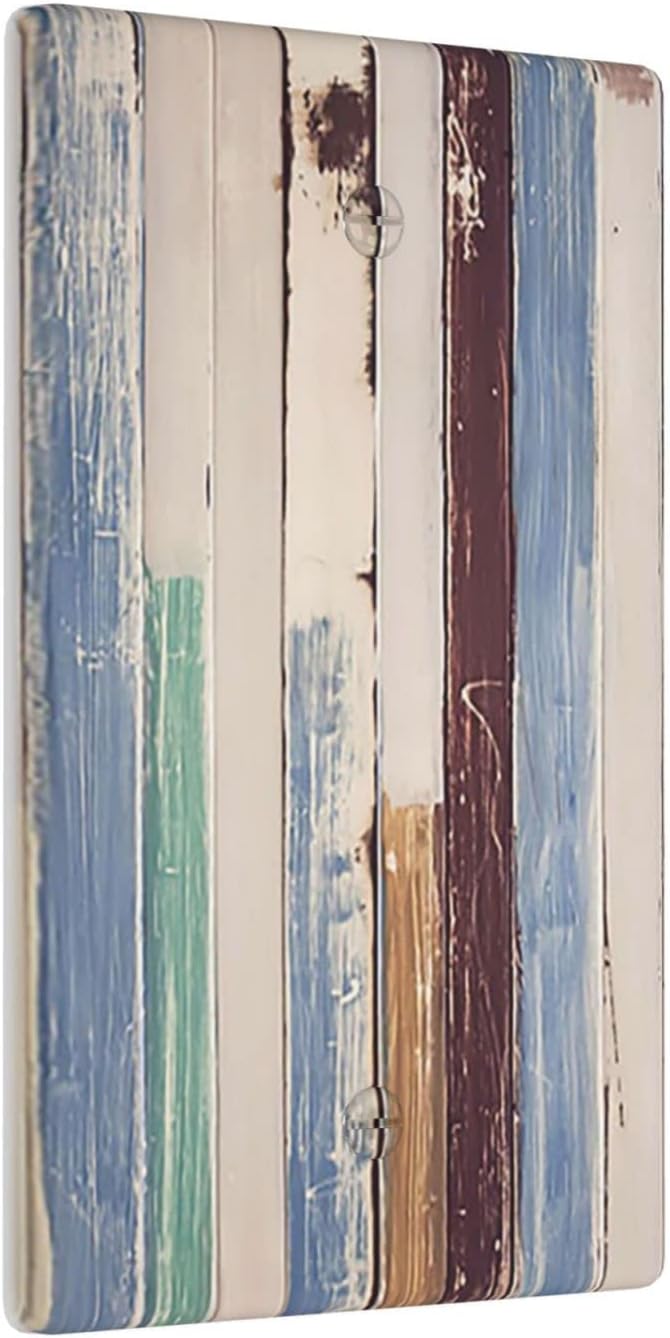 Vintage Wood Texture Farmhouse Decorative Single Blank Switch Cover Wall Plate 1 Gang One for Electrical Outlets Kitchen Living Room Bedroom Bathroom Home Novelty Decorate