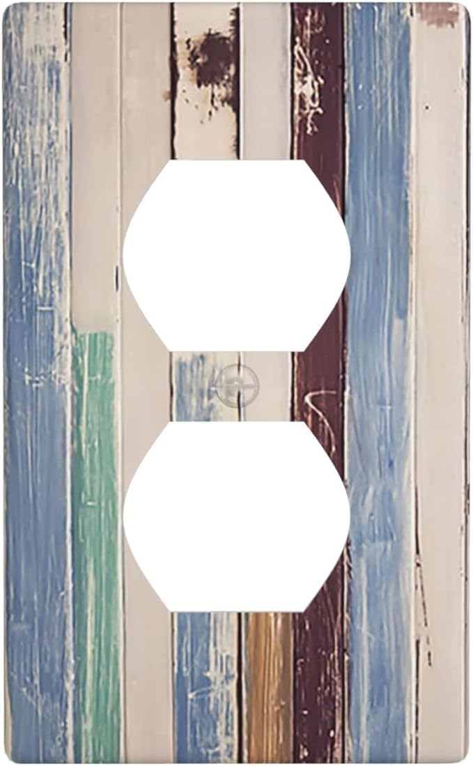 Vintage Wood Texture Farmhouse Decorative 1 Gang Duplex Outlet Cover Wall Plate Single Switch One for Electrical Kitchen Living Room Bedroom Bathroom Home Novelty Decorate