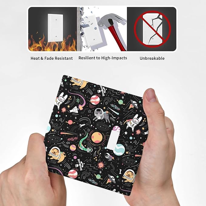 Space Cute Cat Dog Decorative Combo 1 Blank Single Toggle Light Switch Cover Wall Plate 2 Gang One for Electrical Outlets Kitchen Kids Boys Room Bedroom Bathroom Home Novelty Decorate