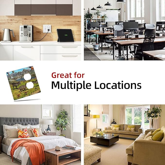 Cute Dinosaur Combo Single Blank 1 Duplex Outlet Switch Wall Plate Cover Decorative 2-Gang for Electrical Boys Kids Room Bathroom Bedroom Home Kitchen One Receptacle 4.5" x 4.6"