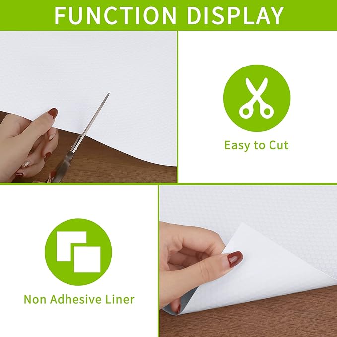 - HEALTHY & SAFE MATERIAL: Made of high quality food-graded EVA material, the shelf liner is non adhesive and durable without odor and BPA. You can safe to be used in contact with fruit and vegetable directly.