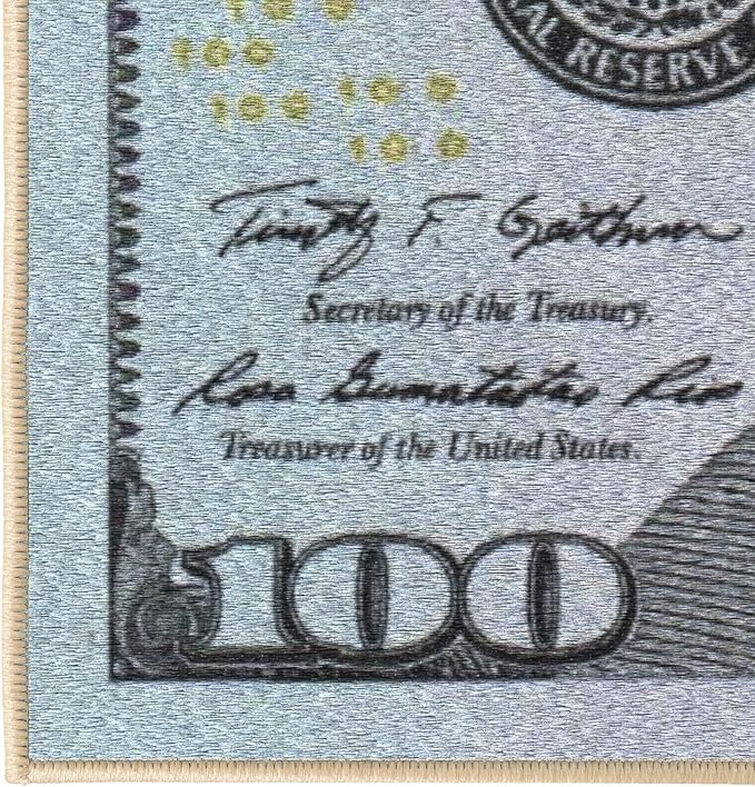 Machine Washable $100 Bill Design Cotton 22x53 Flatweave Runner Rug for Laundry Room, Bedroom, 22" x 53", Multicolor
