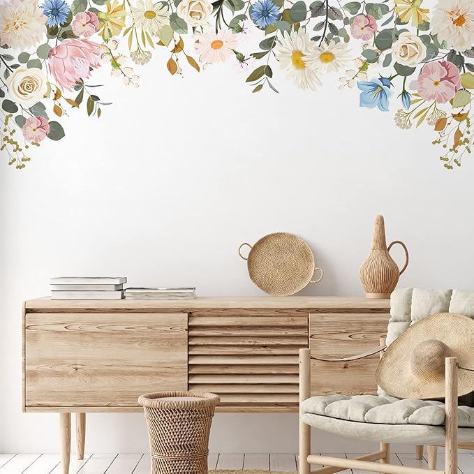 - Special design: the colorful garden bouquet wall sticker adopts watercolor painting style with multiples and pastel colors, looking gentle, romantic and exquisite, which combine the flower bouquets and butterflies to form a lively and dreamy scene in your room