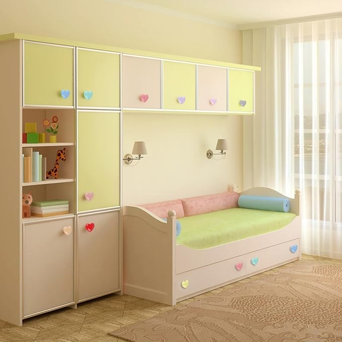 - Set of 10pcs delicate colorful door knobs of different colors, ideal for cabinet, drawer, chest of drawers, wardrobe, etc. Made of durable hard ceramic material, robust and sturdy, not easy to come apart. The love-shape cute cabinet knobs have fine touch, glossy and smooth surface, lovely bright multi-colors and definitely are great choice for children’s room decoration.