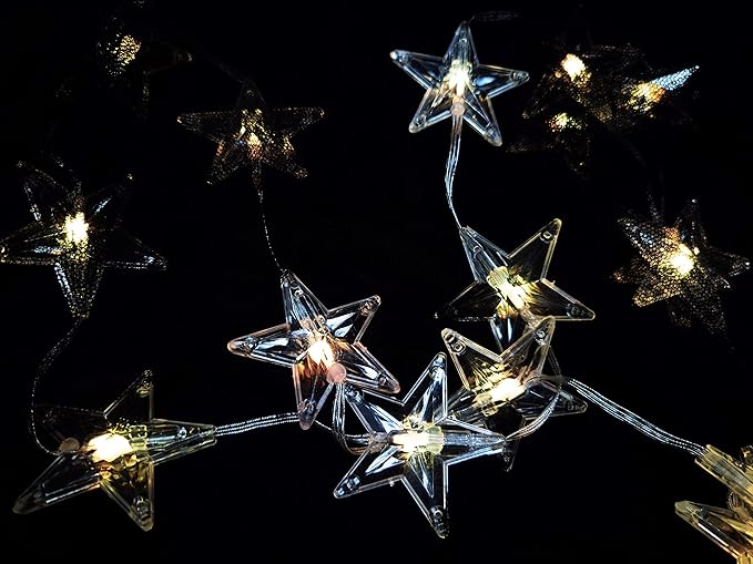 - 【WIDELY USE】43 FT Star String Lights with solid construction plastic material, Updated star string lights can be powered by USB. power line: 3m/10 ft. light string: 10m/33ft, length totally: 13m/43ft approx.enough to cover the whole room and illuminate the whole place, is very suitable for decorating your Bedroom, Ceiling, Computer desk, Living rooms, especially great for Holiday event decoration like Christmas, Halloween, party, birthday, new year, and more
