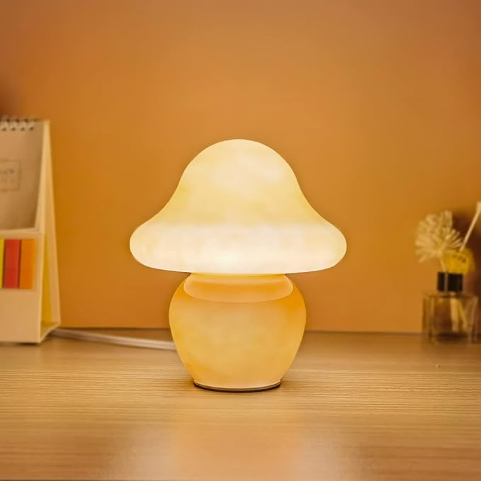 - 【Ceramic Glass, high quality material】:This mushroom lamp is made of high-end ceramic material glass that is fully hand-blown, with high strength, not easy to break, and will not turn yellow like plastic after long-term use. Built-in high-quality LED lights, long life, low energy consumption, no radiation, harmless to babies/children, etc.