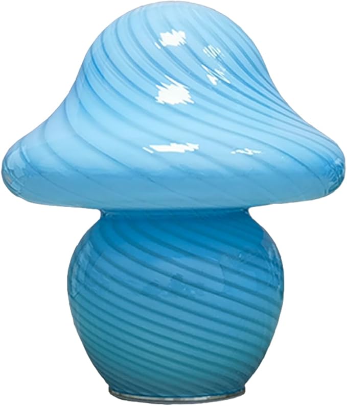 Mushroom Lamp, Small Table Lamp with Sea Blue Striped Glass, Cute Little Swirl Navy Blue Nightstand Lamp for Bedroom Bedside Dorm Living Kitchen, Modern Aesthetic Lamp for Home Decor Gift